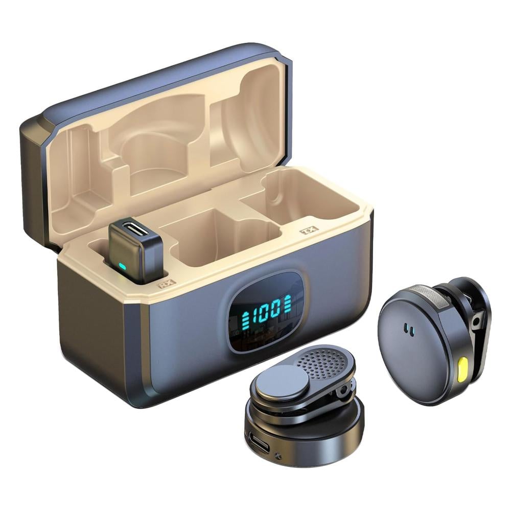 - مايك لاسلكي للجوال يمنحك نظام مايكروفون لاسلكي شامل تجربة تسجيل صوتي واضحة بدون أسلاك، ما يجعله مناسبًا لصناع المحتوى الذين يتنقلون كثيرًا.